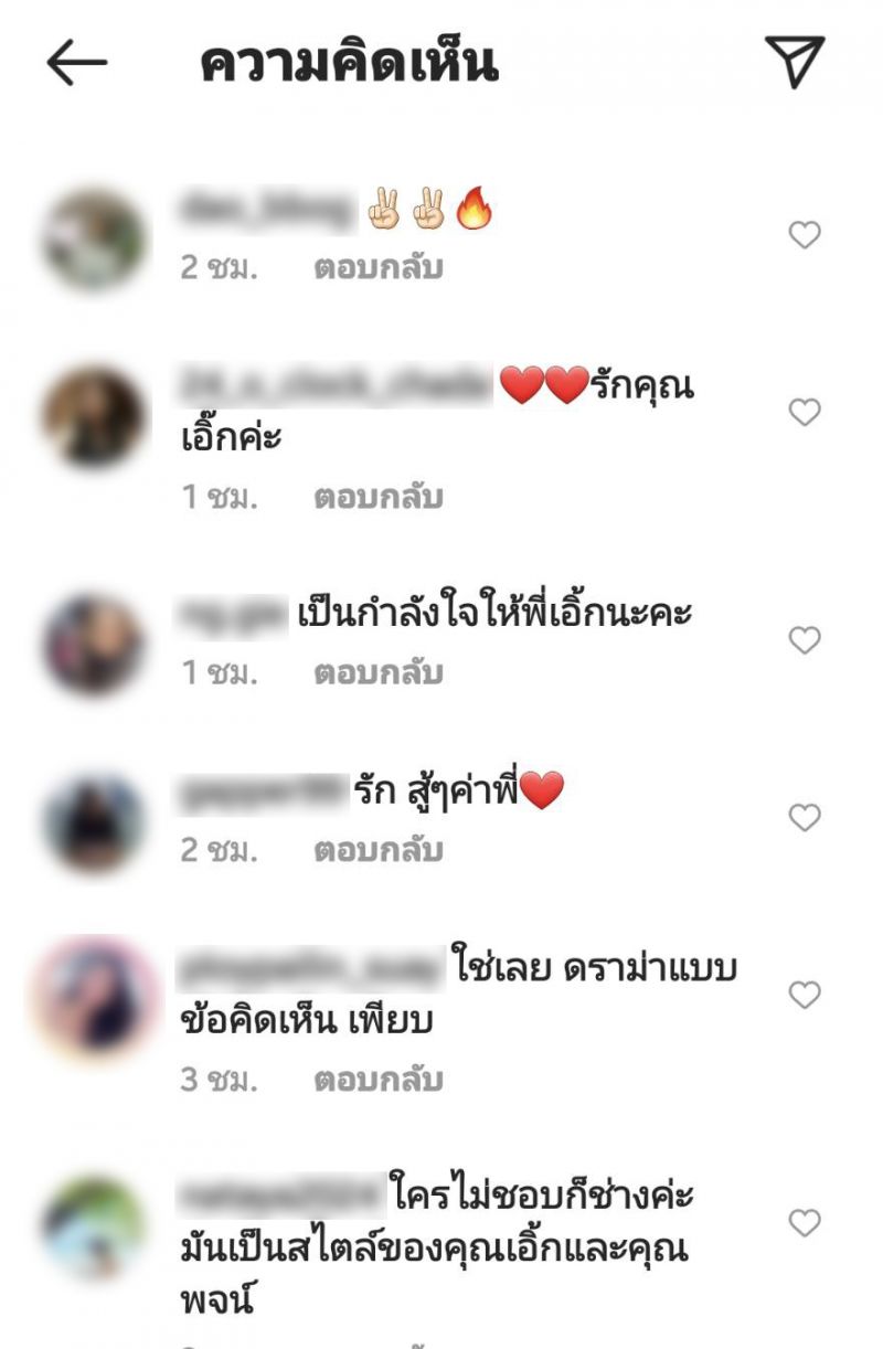 หลังจากขึ้นไอจี ก็มีแฟนๆ เข้ามาให้กำลังใจกัน และเข้าใจสิ่งที่พี่เอิ๊ก พรหมพร อธิบายกันหลายความเห็นดังนี้