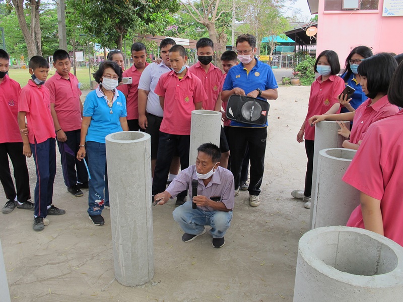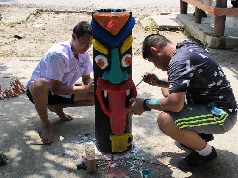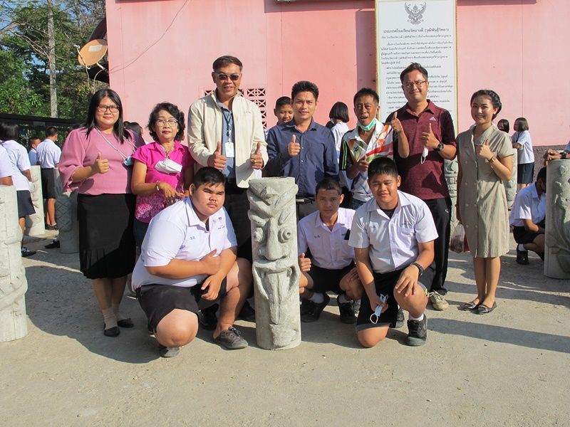 โดยมีนายอุดม นิลรัตน์สุวรรณ ครูสอนศิลปะเป็นผู้ฝึกสอนให้ความรู้ และเทคนิคการปั้นรูปทรงใบหน้าตุ๊กตาในรูแบบที่เก๋ไก๋แปลกตา เช่น รูปยิ้ม รูปยิงฟัน รูปหัวเราะ รูปปลา รูปหัวใจ นักเรียนบางคนมีพรสวรรค์สามารถปั้นมังกรเลื้อยพันท่อซีเมนต์ได้อย่างสวยงามไม่เหมือนใคร โดยนักเรียนจะจับกลุ่ม ๆ ละ 3 – 4 คนต่อท่อปูน 1 ท่อน ช่วยกันลงมือทำผลงานด้วยความสนใจ โดยมีนายเขมชาติ สถิตย์ตันติเวช ผู้อำนวยการฝ่ายองค์กรสัมพันธ์ บริษัท ผลิตไฟฟ้าราชบุรี จำกัด และนายกุลฑล ปูรณวัฒนกุล ประธานบิสคลับราชบุรี ได้มาดูชิ้นงานของเด็ก ๆ ด้วยความสนใจ