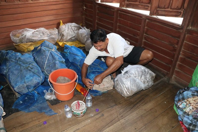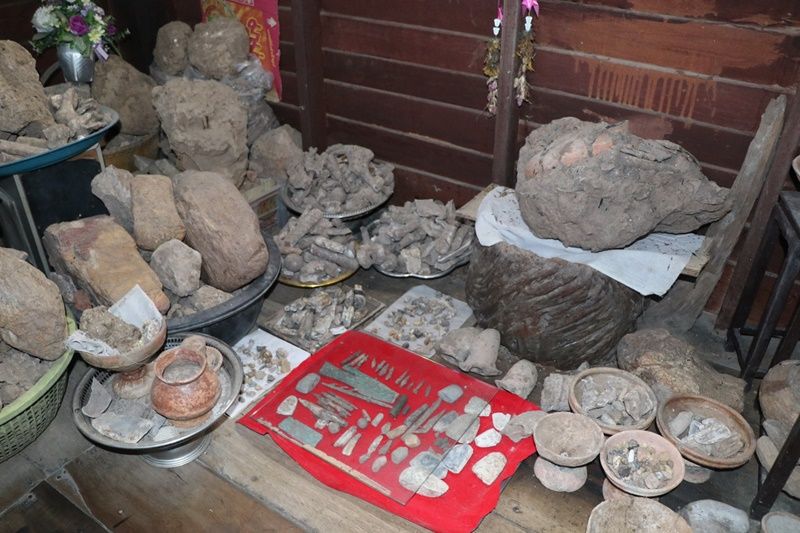 นายสมเกียรติ หรือลุงแจ้ง เล่าให้ฟังว่า หลังจากที่เจ้าหน้าที่กรมศิลปากร ได้ทำการขุดวัตถุโบราณนำไปตรวจสอบและคืนพื้นที่ให้กับตนอล้ว ตนจึงให้คนอื่นมาเช่าพื้นที่ดังกล่าวทำไร่อ้อยต่อ และก่อนที่จะมีการไถ่ปรับหน้าดินเพื่อทำไร่อ้อยนั้น ตนได้ลงมือขุดหาวัตถุโบราณใกล้เคียงกับที่เดิมอีกครั้งปรากฎพบโครงกระดูกมนุษย์ฟอสซิลสัตว์ ขวานหิน เครื่องปั้นดินเผาเพิ่มขึ้นอีก ตนจึงได้ทำการเซาะโครงกระดูกที่ติดกับเครื่องใช้ต่างๆ ทำการเคลื่อนย้ายมาเก็บรักษาไว้ในบ้านของตน แต่กลัวว่าจะเกิดแตกหักเสียหายจึงได้นำมุ้งมาห่อแล้วมัดด้วยเชือกอย่างแน่นหนานำมาเก็บไว้ที่บ้าน ซึ่งตนคิดอยากจะให้ทางราชการสร้างเป็นพิพิธภัณฑ์เพื่อเก็บไว้ให้ลูกหลานได้ดูในพื้นที่ของตน