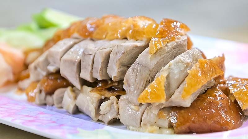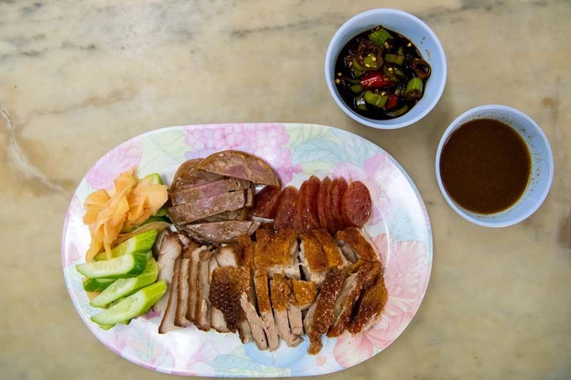 “เนื้อเป็ด” ชิ้นหนานุ่ม ติดกับหนังเป็ดกรอบ มีกลิ่นของเครื่องเทศโชยเข้าจมูก ส่วน “หมูกรอบ” เป็นอีกหนึ่งความอร่อย เนื้อหมูชิ้นหนา ชั้นเนื้อสลับกันมัน ทั้ง 2 เมนู ทานคู่กับน้ำราดสูตรพิเศษของร้าน ทำให้เนื้อเป็ดและหมูกรอบมีความฉ่ำยิ่งขึ้น ถือเป็นความอร่อยเฉพาะของทางร้าน