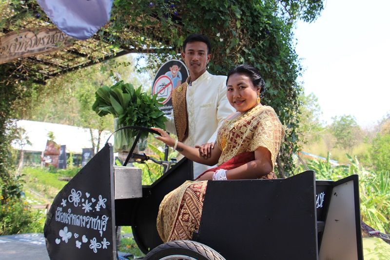 โดยบ่าวสาวคู่นี้ได้ควงแขนกันมาในชุดวิวาห์ ฝ่ายหญิงห่มผ้าสไบนุ่งผ้าซิ่นสีส้มอมแดงปักเลื่อมทั้งผืนแบบไทยโบราณสวยงาม ส่วนฝ่ายชายมาในชุดไทยนุ่งโจงกระเบนสวมเสื้อสีงาช้าง เดินคลอเคลียคล้องแขนพากันมาทานอาหารฉลองสมรส ถ่ายรูปเลือกมุมสวยๆ เพื่อเก็บไว้เป็นที่ระลึก อีกทั้งยังช่วยกันเลือกซื้อผักหลายชนิดปลอดสารพิษที่ทางเรือนจำให้ผู้ต้องขังมาว่างจำหน่วยให้กับนักท่องเที่ยว เพื่อเตรียมนำกลับไปผัดทำอาหารเป็นกับข้าวกินฉลองวันมงคลสมรสกันที่บ้านในตอนเย็น ซึ่งได้สร้างความแปลกตาให้กับนักท่องเที่ยวและผู้ที่มารับประทานอาหารกันอย่างมาก