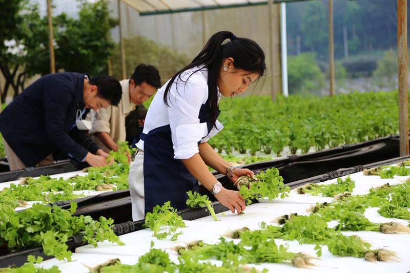 ผักเมืองหนาวกว่า 120 ชนิด อาทิ “ผักตระกูลสลัด” “สมุนไพร” “สวิสชาร์ด” “มะเขือเทศ” “ขึ้นช่าย” มีปลูกหมุนเวียนตลอดปีในโรงเรือนขนาดใหญ่ เพื่อเป็นจุดเรียนรู้แก่ผู้เข้าเยี่ยมชม