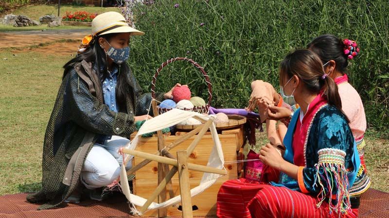 “หัตถกรรมชนเผ่า” ที่โดดเด่น ได้แก่ ผ้าทอกี่เอวของชนเผ่าดาราอั้งซึ่งย้อมสีธรรมชาติ เครื่องแต่งกายชนเผ่าที่มีเอกลักษณ์ สีสันสดใส สวยงาม ชนเผ่าลาหู่ เจ้าของกำไลหญ้าอิบูแค และตระกร้าสานอากากุ ภูมิปัญญาที่สืบทอดจากรุ่นสู่รุ่น นอกจากเป็นเครื่องใช้ในชีวิตประจำวันแล้ว ยังเป็นสินค้าที่สร้างรายได้แก่ชุมชนอีกด้วย