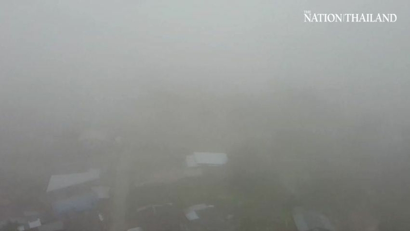 Nakhon Ratchasima’s Phimai district was blanketed by thick smog on Tuesday morning because a summer storm made humidity rise significantly.