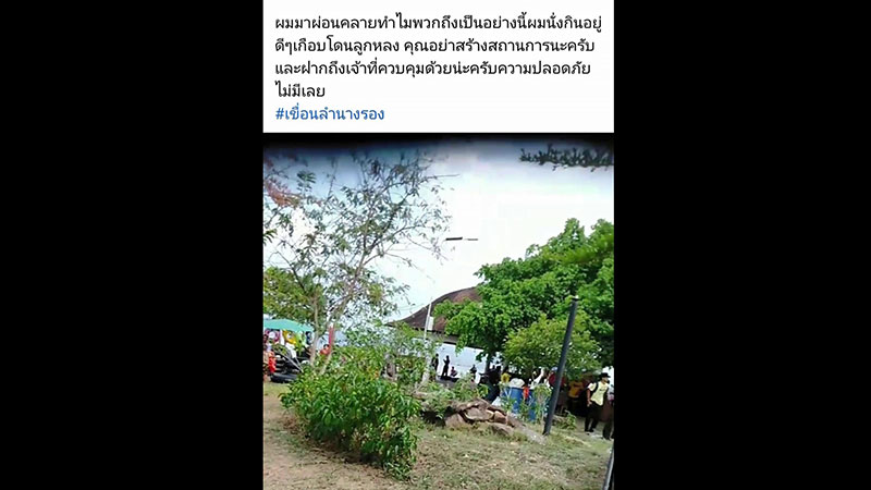 จากการสอบถามผู้โพสต์ให้ข้อมูลว่า เหตุดังกล่าวเกิดขึ้นเมื่อช่วงบ่ายวานนี้ 7 มี.ค.64 ซึ่งเป็นวันหยุด ก็ได้เดินทางไปเที่ยวพักผ่อนที่หาดทรายเทียมเขื่อนลำนางรองพร้อมกับครอบครัว ซึ่งก็มีเด็กอายุเพียง 2 ขวบไปด้วย ระหว่างที่นั่งรับประทานอาหารบริเวณริมเขื่อนลำนางรอง จู่ๆ ก็มีกลุ่มวัยรุ่นก่อเหตุยกพวกไล่ตีกัน ทั้งขว้างปาขวดแก้วใส่กัน ทำให้ผู้คนที่มาเที่ยวพักผ่อนกับครอบครัว ต่างหอบลูกหลานวิ่งหลบไปคนละทิศละทาง เพราะกลัวจะถูกลูกหลง บางคนกลัวถึงกับเดินทางกลับเพราะกลัวจะไม่ปลอดภัย