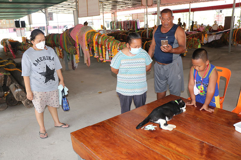 10 มีนาคม 2564 ผู้สื่อข่าวรายงาน ที่บริเวณวัดใหม่โคกมะรุม ต.ม่วงเตี้ย อ.วิเศษชัยชาญ จ.อ่างทอง พบแฟนคลับแมวเซเลปใบ้หวยทั่วสารทิศ เดินทางมาหาเจ้าโทน เพื่อขอเลขเด็ดนำไปเสี่ยงดวงกันอย่างคึกคัก พร้อมนำอาหารแมวและปลาทู มามอบให้ผู้ดูแลเจ้าโทน และไม่พลาดนำกระดาษเขียนตัวเลข มาให้เจ้าโทนได้ใช้หางเขี่ยเพื่อเสี่ยงทายตัวเลข