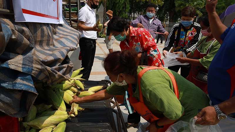 12 มีนาคม 2564 เมื่อเวลา 11.00 น. ที่บริเวณสนามหน้าศาลากลางจังหวัดนครราชสีมา ได้มีกลุ่มพี่น้องเกษตรกรผู้ปลูกข้าวโพดในพื้นที่จังหวัดนครราชสีมา นำข้าวโพดหวาน บรรทุกใส่รถกระบะ จำนวน 20 คัน รวมปริมาณข้าวโพดหวานกว่า 50 ตัน และผลผลิตทางเกษตร อื่นๆ เช่น แฟง , ฟักทอง และมันเทศ นำมาแจกจ่ายให้กับพี่น้องประชาชนฟรี หลังราคาข้าวโพดหวานตกต่ำ จากสถานการณ์การแพร่ระบาดของไวรัสโควิด-19 ทำให้โรงงานรับซื้อผลผลิตข้าวโพดลดลง ส่งผลให้ข้าวโพดหวานล้นตลาด ซึ่งมีประชาชนจำนวนมากมาต่อคิวเพื่อรอรับข้าวโพดหวานและผลผลิตทางการเกษตรเป็นจำนวนมาก