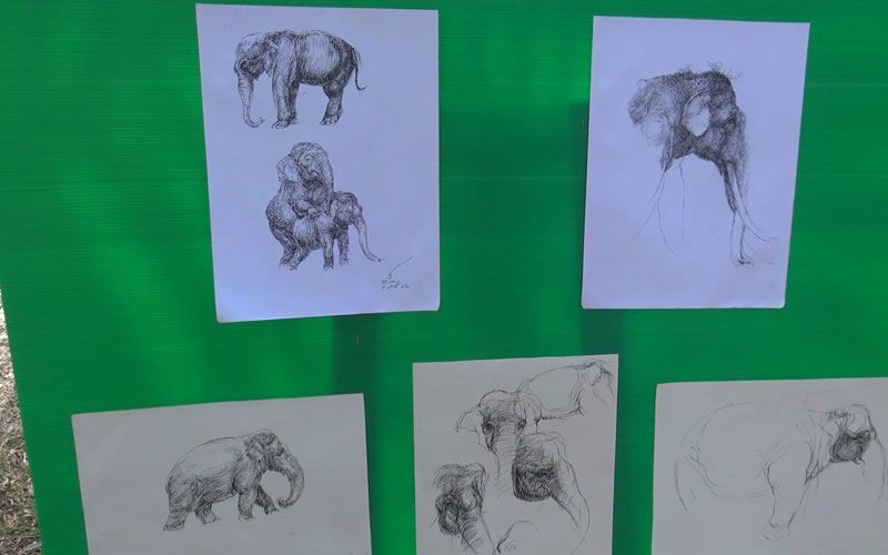 วันช้างไทย วันนี้ (13 มี.ค.64) อาจารย์อำนวย วรพงศธร วัย 63 ปี อดีตอาจารย์สอนศิลปะวิทยาลัยอาชีวศึกษาอุบลราชธานี เป็นคนกรุงเทพฯ เดินทางท่องเที่ยวไปที่ต่างๆ หลังเกษียณอายุราชการและที่ผ่านมาเคยทำงานที่มูลนิธิร่วมกันกับ ผอ.วันชัย ตันวัฒนะ ผู้อำนวยการสวนสัตว์สงขลาเลยได้รู้จักกันและได้รับเชิญมาร่วมงานวันช้างไทยที่สวนสัตว์สงขลา โดยอาจารย์อำนวย ซึ่งปกติจะเป็นคนสอนนักเรียนให้วาดรูปต่างๆ แต่ในวันนี้อาจารย์อำนวย ลงลายเส้นเป็นคนวาดภาพเองและวันช้างไทยอาจารย์อำนวย จะต้องวาดช้างเพื่อนำไปติดที่บอร์ดโชว์ให้เด็กๆ ที่มาเที่ยวได้ชม