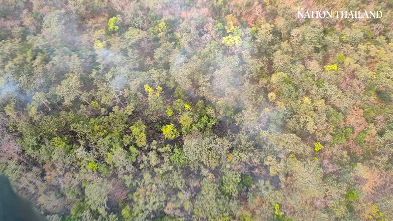 The helicopter sourced water 15 times from a reservoir in San Sai district to put out the fires in Doi Saket district. Some 30,000 litres of water were used for the operation.