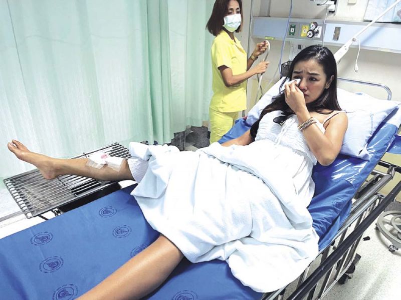 “ตอนนี้ก็สบายใจขึ้นค่ะ แต่ความเจ็บคือเจ็บกว่าเดิม เพราะเป็นวันที่ 2 หลังจากเกิดเหตุเลยมีอาการระบม ค่อนข้างบวมและช้ำ เย็บไปทั้งหมด 17 เข็ม และเป็นครั้งแรกเลยที่แตรเข้าห้องผ่าตัดโดยวิธีบล๊อกหลังซึ่งตื่นเต้นและกลัวมาก เมื่อวานก็ค่อนข้างเครียดหลายอย่างเพราะเราไม่เคยเจออุบัติเหตุที่หนักหนาสาหัสถึงขนาดต้องเย็บแผลเลยค่ะ เนื่องจากว่าแผลค่อนข้างลึกมากและคุณหมอก็วินิจฉัยแล้ว คือตอนแรกฉีดยาชาแล้วจะเย็บสดแต่แตรรู้สึกเจ็บมากและไม่ไหวจริงๆ ก็เลยเปลี่ยนเป็นการบล็อกหลังแทนค่ะ เพื่อให้ข้างล่างชา และคุณหมอจะได้เย็บให้แผลสวยงามก็ค่อนข้างใช้เวลาเยอะ และคุณหมอศัลยกรรมก็ช่วยตกแต่งแผลให้ พอตื่นมาเมื่อคืนก็มึนๆ รู้สึกตึงแผลมากๆ ด้วยความที่เข็มเล็กและเย็บแผลค่อนข้างถี่เพื่อความสวยงาม และเนื้อก็เหวอะมากและหมอก็ดึงเนื้อให้มาติดกัน”