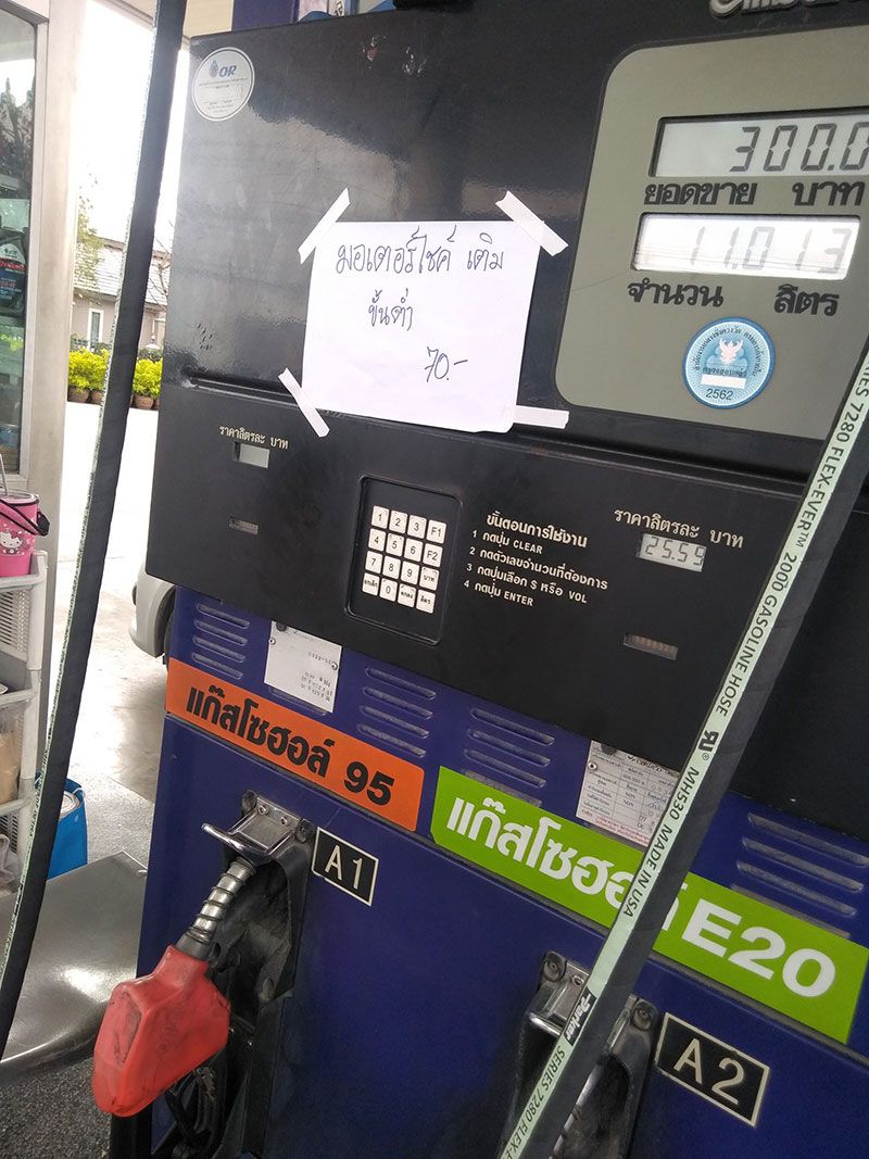 คาใจ!! หนุ่มเข้าปั้มเจอป้ายติดหรา มอ’ไซค์ต้องเติมขั้นต่ำ70