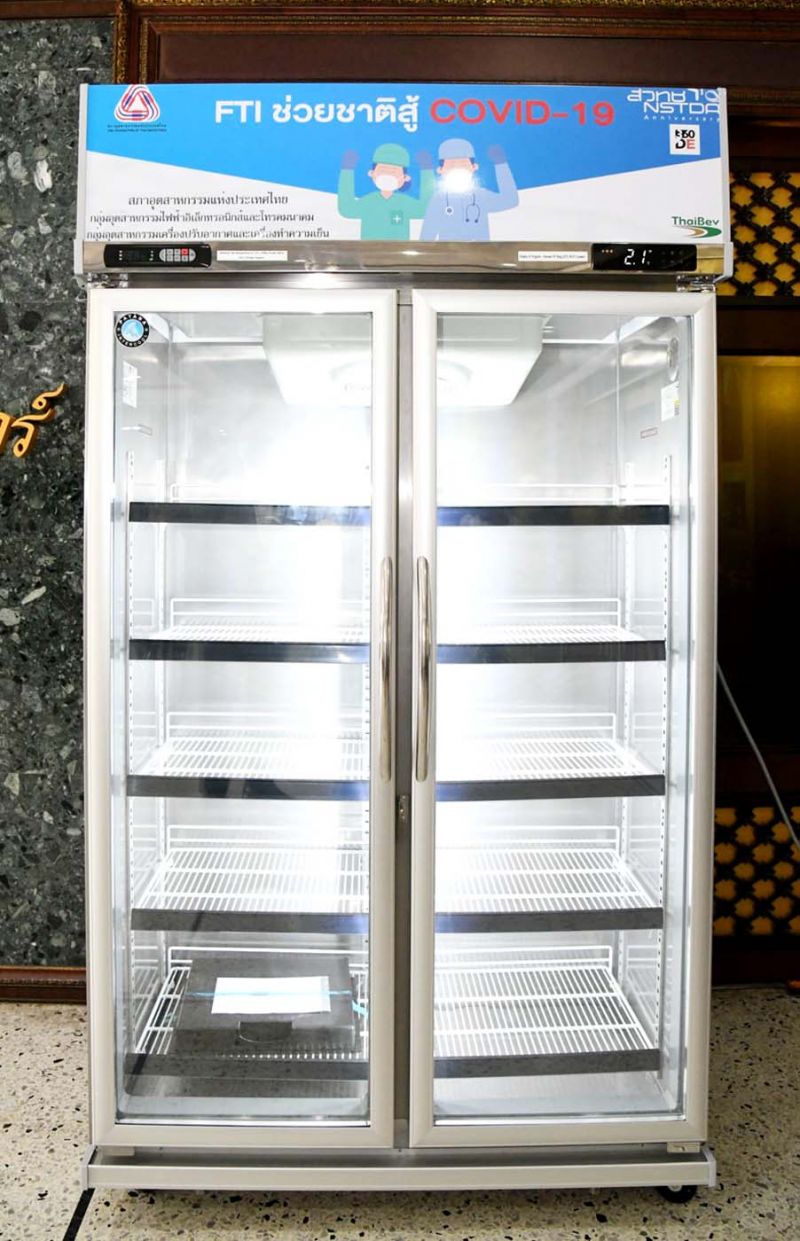 ทั้งนี้ ตู้แช่จัดเก็บวัคซีน 1 เครื่อง สามารถเก็บวัคซีนได้ 5 หมื่นโดส ซึ่งบริษัท ไทยเบฟเวอเรจ จำกัด (มหาชน) และสภาอุตสาหกรรมแห่งประเทศไทย ได้ดำเนินการมอบให้แก่สถานพยาบาลของรัฐ เพื่อให้คนไทยได้รับวัคซีนที่มีคุณภาพ ปลอดภัยจากโควิด-19 ต่อไป