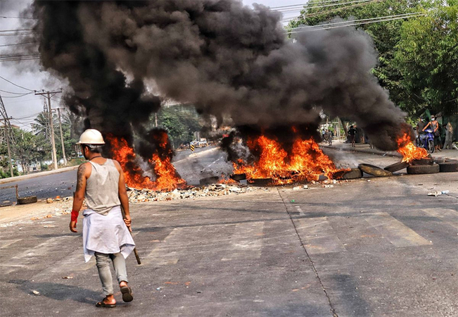 Coup leaders imposed the measure after the Chinese Embassy asked authorities to guarantee the safety of its investments and citizens. Military-run broadcaster Myawady announced that more than 2,000 protesters blocked roads over the weekend to prevent firefighters from putting out fires at several factories in industrial zones, which included Chinese businesses.
