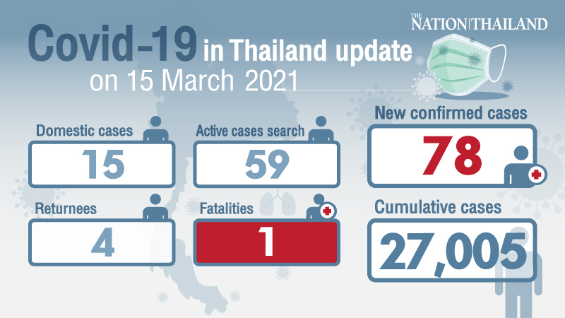 As of Monday, the number of confirmed cases in Thailand had risen to 27,005. Of them, 24,074 had been contracted locally, including 15,024 who were found via proactive testing, while 2,931 were returnees.