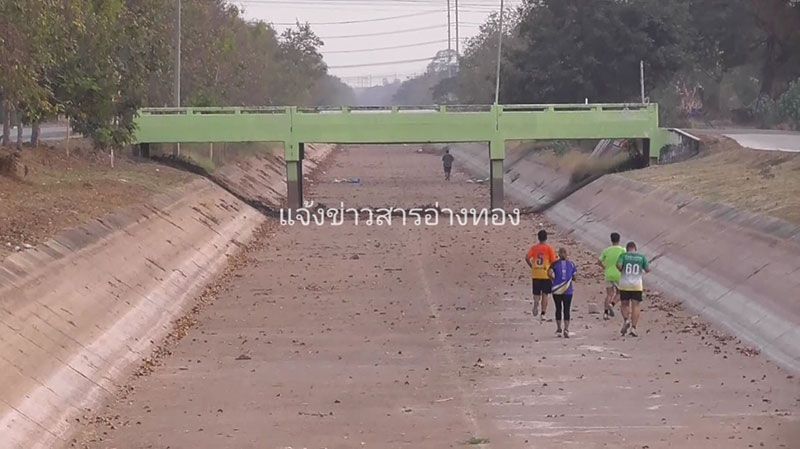 คลองชลประทานแห้งนาน 3 เดือน คอนกรีตเริ่มแตกร้าว-แปรสภาพเป็นสนามวิ่ง