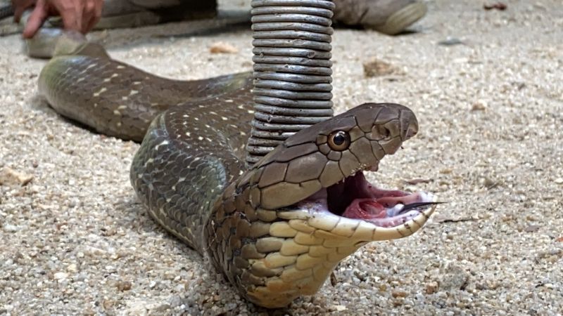 สอบถามนายสมนึก ฯ เจ้าของบ้าน เล่าว่า ขณะที่ตนเดินอยู่บริเวณบ้านก็พบงูจงอางกำลังเลื้อยเข้าไปภายในห้องเก็บของอย่างรวดเร็ว โดยตนก็ได้ใช้ไม้ยาวดักไว้เพื่อไม่ให้เจ้างูตัวดังกล่าวหนีไปได้ ซึ่งงูจงอางเกิดตกใจและชูคอยืนขึ้น ตนจึงวิ่งออกมาและโทรแจ้งเจ้าหน้าที่กู้ภัยให้มาจับตัวและนำไปปล่อยคืนสู่ธรรมชาติต่อไป