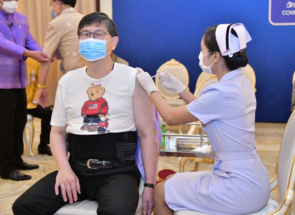To avoid overcrowding, no media were allowed in the Santi Maitree Building during the inoculation, but people can watch it live via Facebook @ThaigovSpokesman from 8.30am.