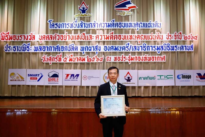 รางวัลดังกล่าวจัดขึ้นโดยมลูนิธิเพื่อสังคมไทยในโครงการหนึ่งล้านกล้าความดีตอบแทนคุณแผ่นดินได้มอบรางวัลบุคคลตัวอย่างแห่งปีและรางวัลความดีตอบแทนคุณแผ่นดิน ประจำปี 2564 โดยมีวัตถุประสงค์สร้างกำลังใจให้ คนดี…ความดี…แทนคุณแผ่นดิน โดย“รางวัลไทย” มิได้ทำหน้าที่สงเคราะห์หรือช่วยเหลือ หากแต่ส่งเสริมและ สนับสนุนให้“บุคคล”และ“องค์กร”ทั้งภาครัฐและเอกชนให้ประพฤติปฏิบัติอยู่ในกรอบของคุณความดีมีวินัย มีความสามารถในการแข่งขันและเป็นแบบอย่างที่ดีของคนทั่วไป ร่วมกันยกระดับสังคมไทยให้มีความน่าอยู่ มีความมั่นคง มั่งคั่ง สืบไป