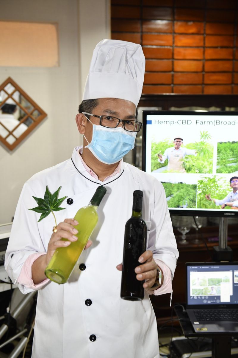พร้อมได้นำเอาผลงานวิจัย และออกแบบรายการอาหารปรุงด้วยส่วนผสมกัญชาที่ถูกกฏหมาย คือรากต้นใบของกัญชาพันธ์ุฝอยทอง-ภูผายล และหางกระรอกภูพาน รวมทั้งพันธุ์พื้นเมืองมาวิจัยเข้าสูตรกัญชา ซึ่งเป็นลิขสิทธิ์เฉพาะ ปรุงอาหารทั้งเมนูเนื้อ/หมู/ไก่/ปลา/ซีฟู้ด และเครื่องดื่มหลายรายการไปสู่ผู้บริโภคคนไทยอย่างถูกต้องให้ได้ลิ้มรสคุณประโยชน์จากกัญชาตามหลักวิชาการและปลอดภัย ทั้งนี้แยกเมนูอาหารและเครื่องดื่มออกเป็น3กลุ่มลูกค้า(Segmentation) คือ