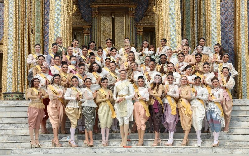 ผู้เข้าประกวด มิสแกรนด์ อินเตอร์เนชั่นแนล 2020 สวมชุดไทย เยี่ยมชมวัดพระแก้ว