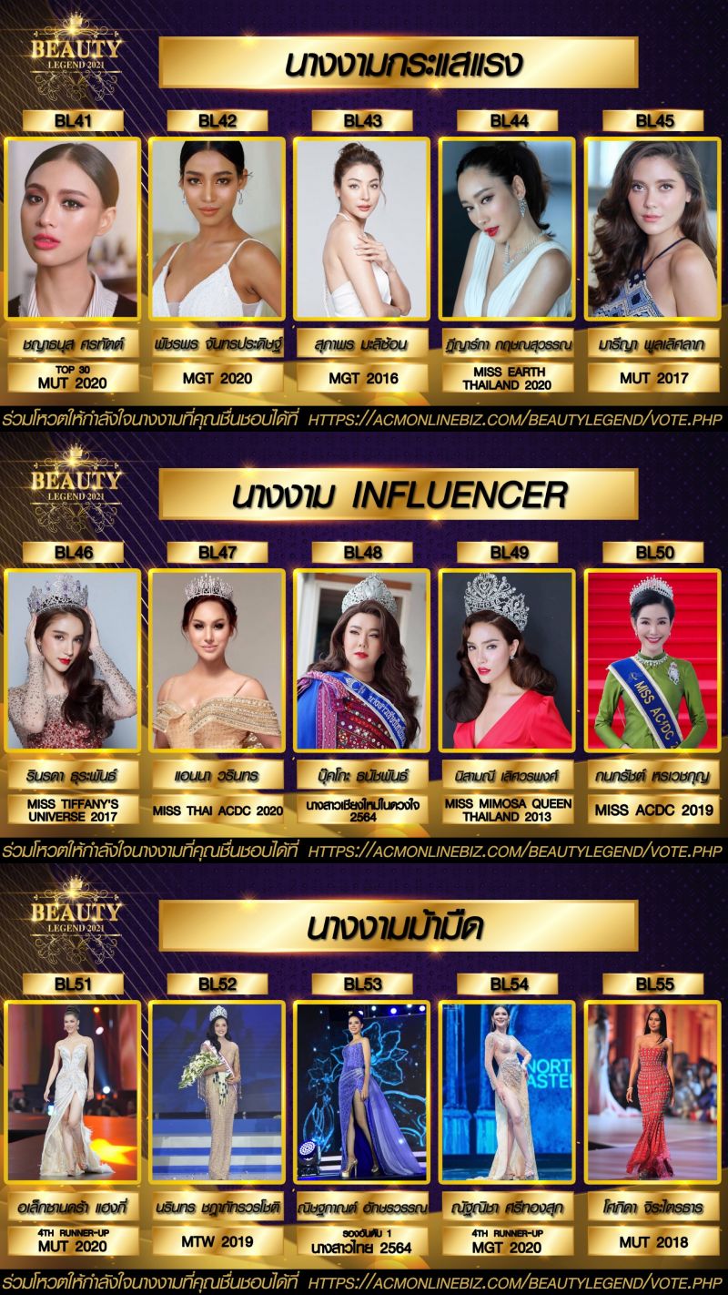 ทางเวปไซด์คลิก link http://bit.ly/beautylegend2021แล้วสามารถอ่านรายละเอียดและวิธีการโหวต ตั้งแต่ BL01 – BL70 ได้อย่างง่ายตามคำแนะนำ