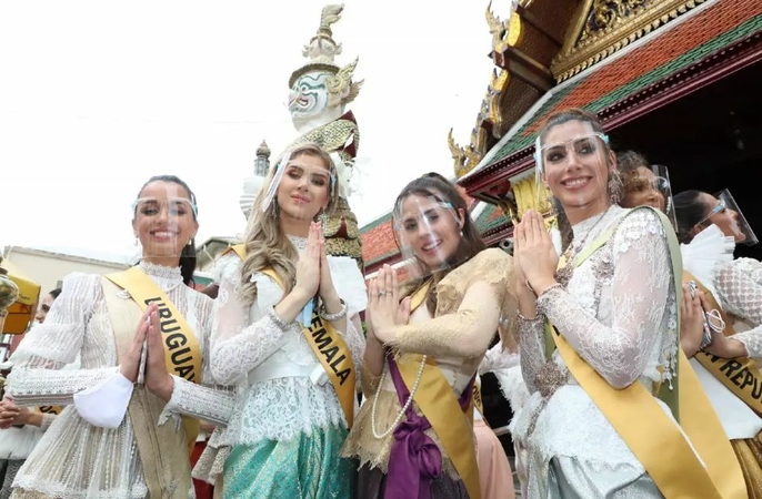 Miss Grand International contestants from around the globe visited Bangkok’s famed Wat Phra Kaew (Temple of the Emerald Buddha) on Thursday, after completing 14 days in quarantine.