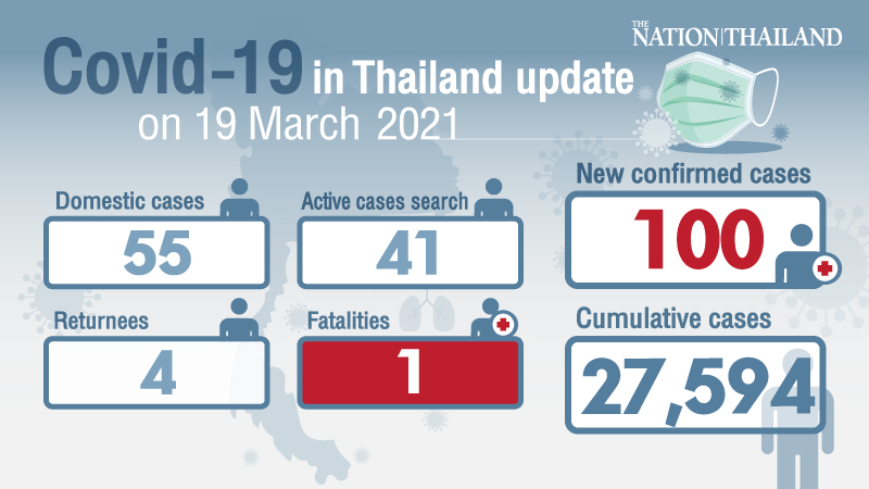 Meanwhile, a 53-year-old woman who had diabetes, myocardial infarction and pneumonia in Samut Sakhon became the 90th fatality since the outbreak. She developed cough, had breathing difficulties and lost her sense of smell and taste on January 29. The patient was taken to a private hospital on February 2 with Covid-19 disease detected before transfer to a hospital in Bangkok the next day. She died on March 17 after a blood infection was detected in the previous week.