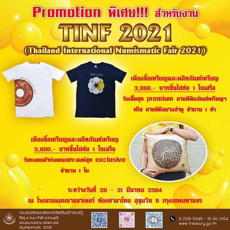 กองส่งเสริมและพัฒนาทรัพย์สินมีค่าของรัฐ ขอเชิญเที่ยวชมงานแสดงเหรียญธนบัตรเงินตราโบราณ (TINF2021:Thailand International Numismatic Fair 2021) ในวันเสาร์ที่ 20 และวันอาทิตย์ที่ 21 มีนาคม 2564 ระหว่างเวลา 10.00 น. ถึง 18.00 น. ณ โรงแรมแอมบาสซาเดอร์ สุขุมวิท 11 กรุงเทพมหานคร จัดโดยสมาคมเหรียญกษาปณ์และเงินพดด้วง สามารถเข้าชมงานได้โดยไม่เสียค่าใช้จ่าย