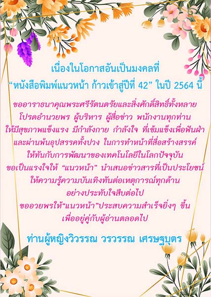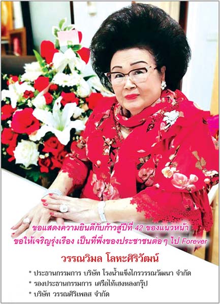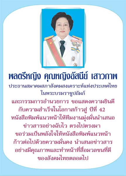 ครบรอบ41ปีเต็มสู่ปีที่42 หนังสือพิมพ์แนวหน้า’ขอบพระคุณทุกคำอวยพร’