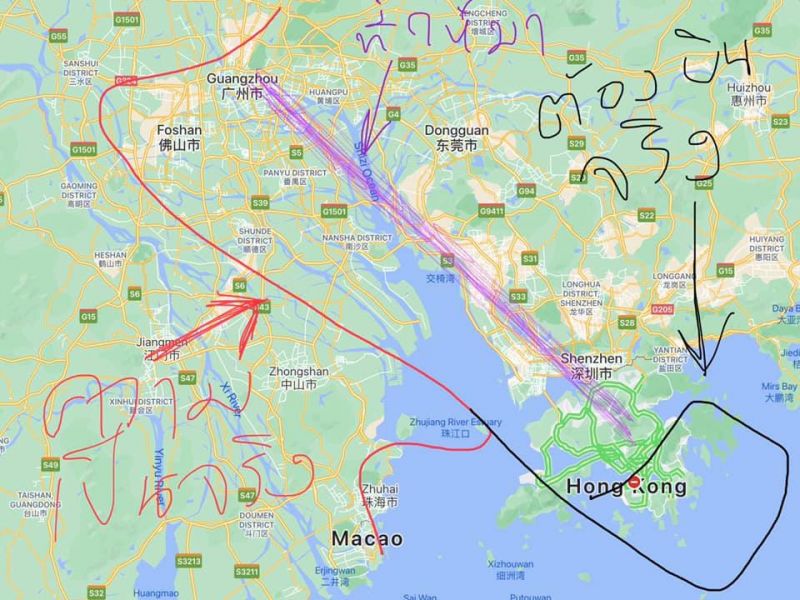 มันคิดจากการลากเส้นเป็นเส้นตรงจากกวางเจาไปฮ่องกง!!!!!!
