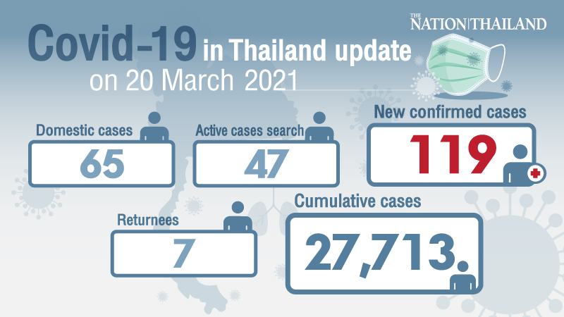 The Centre for Covid-19 Situation Administration (CCSA) on Saturday reported 119 new cases, seven of them overseas travellers in quarantine facilities.
