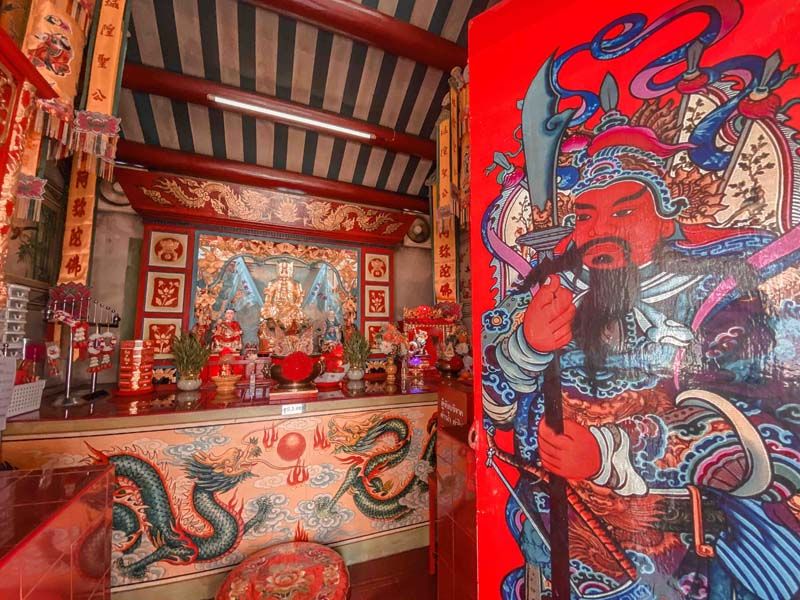 จากวัดพุทธไปต่อวัดจีน ที่ศาลเจ้ากวนอู ริมแม่น้ำเจ้าพระยา ซึ่งเป็นศาลเจ้าที่เก่าแก่ที่สุดในประเทศไทย อายุ 200 กว่าปี สร้างในปี พ.ศ.2279 นอกจากนี้