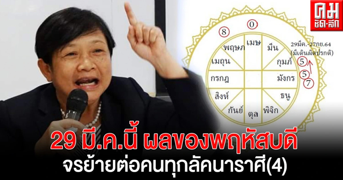 ‘โหรฟองสนาน’ เผย 29 มี.ค.นี้ ผลของพฤหัสบดีจรย้ายต่อคนทุกลัคนาราศี(4)