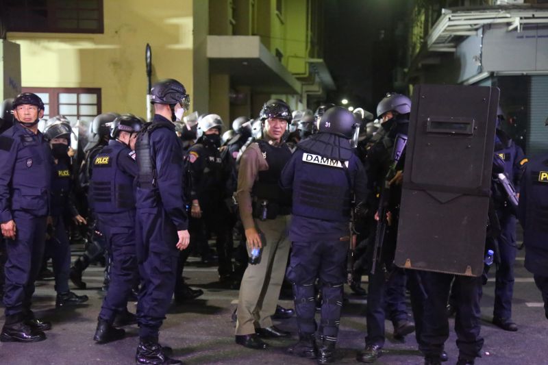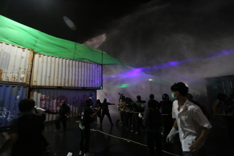 6.45pm: Some protesters reportedly try to pull down the top container of the wall erected by police in front of the King’s Palace, while police order them to stop the protests immediately. They are warned that high-pressure water spray cars were ready to deal with violation of law or acts that destroyed state property.