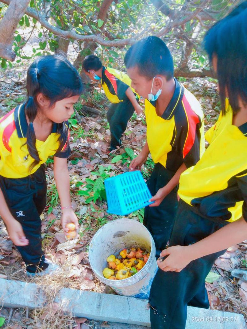 นักเรียนโรงเรียนบ้านปากคลองเก็บมะม่วงหิมพานต์ขาย เป็นรายได้เสริม เป็นการสร้างทักษะชีวิต ทักษะอาชีพของนักเรียน