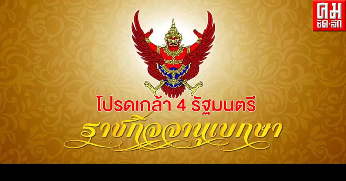 พระบรมราชโองการ โปรดเกล้า 4 รัฐมนตรีใหม่ ตรีนุช เทียนทอง รมว.ศึกษาฯ ,ชัยวุฒิ ธนาคมานุสรณ์ รมว.ดิจิทัล , สินิตย์ เลิศไกร รมช.พาณิชย์ , วีรศักดิ์ หวังศุภกิจโกศล รมช.คมนาคม