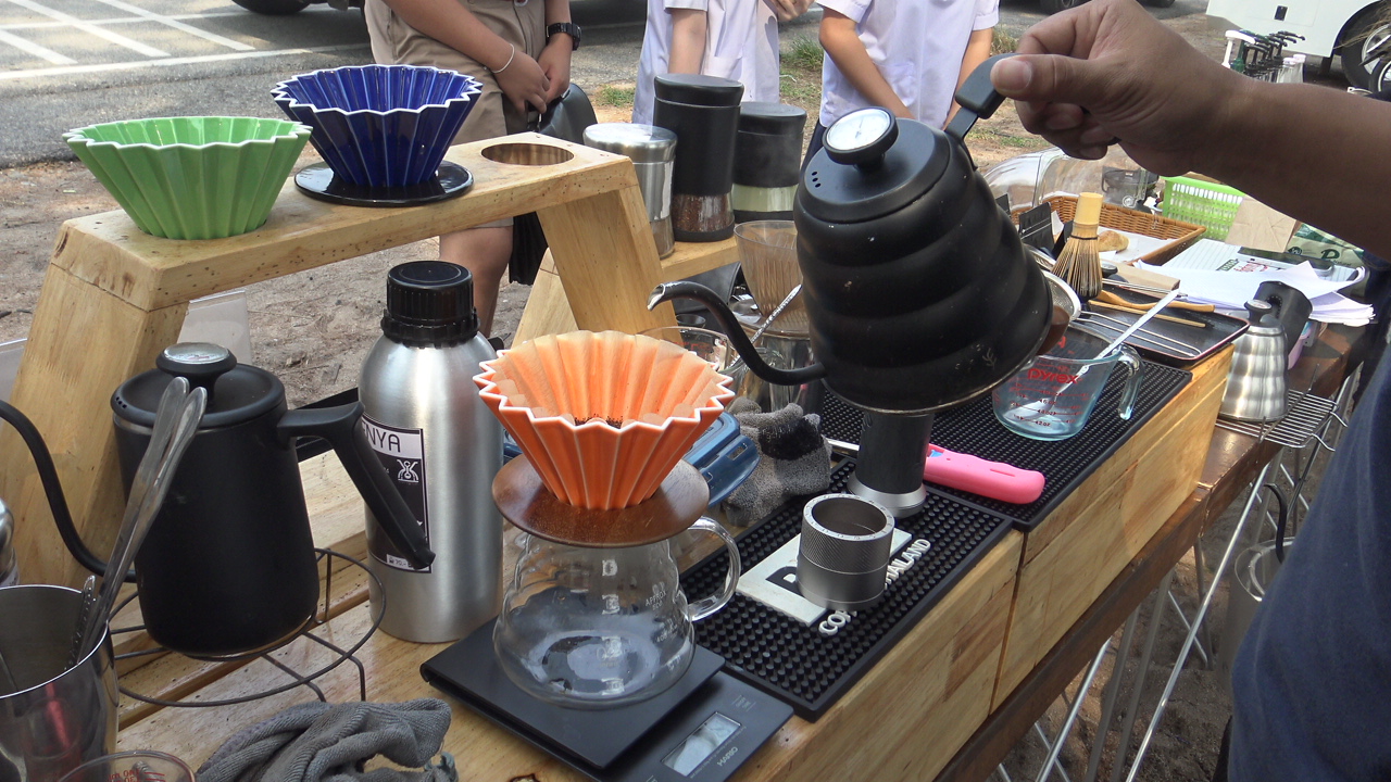 วันนี้ “ทีมข่าวเฉพาะกิจแนวหน้าออนไลน์” จะพาไปแนะนำร้านที่ได้รับความสนใจเป็นอย่างมาก คือ ร้านขายเครื่องดื่ม และชากาแฟ ที่มีอยู่หลายร้าน แต่ละร้านจะมีเก้าอี้ให้ลูกค้า นั่งดื่มและจิบกาแฟ ที่ใต้เงาต้นสน
