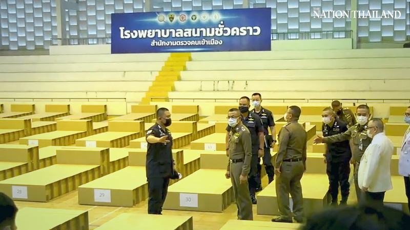 National Police chief Pol General Suwat Chaengyodsuk on Monday visited the Boonyachinda Stadium in Bangkok’s Lak Si district which has been recently converted into a field hospital to quarantine and treat persons infected with Covid-19.