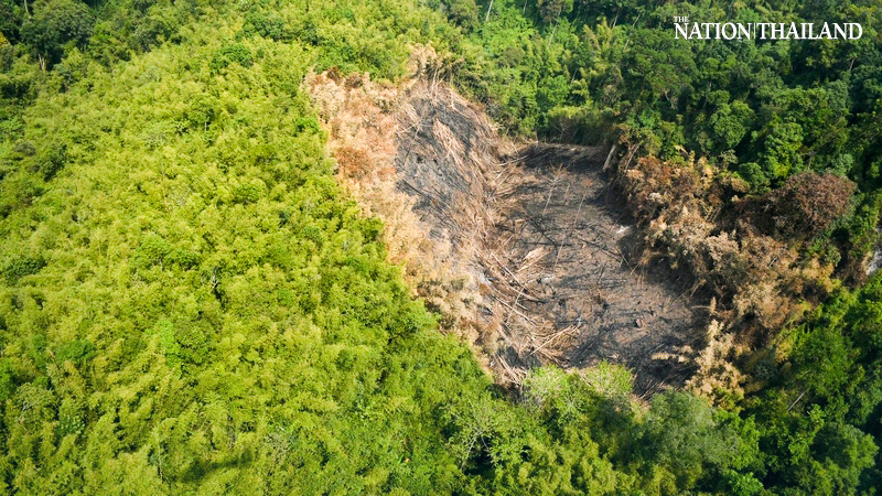 Aerial photographs of Kaeng Krachan National Park in Phetchaburi showed evidence of further encroachment near the Myanmar border on Friday. A helicopter team deployed by the Ministry of Natural Resources and Environment discovered four areas where park forest had been cleared.