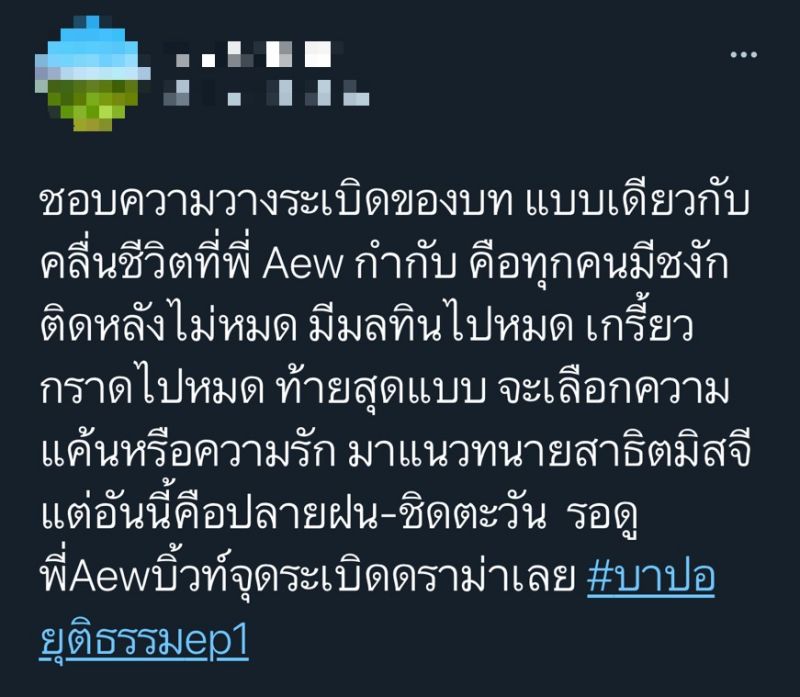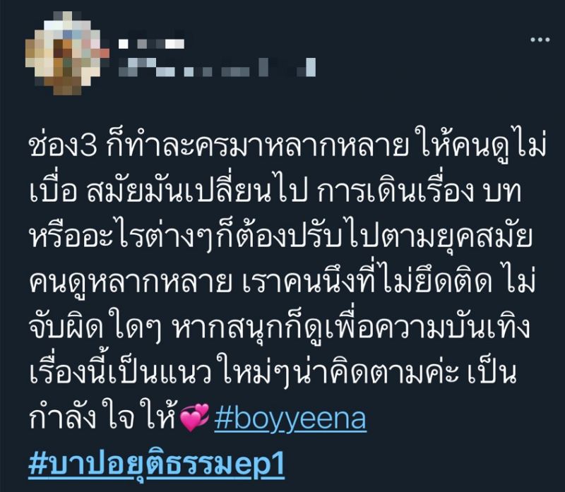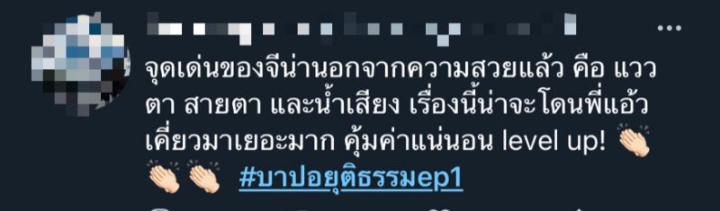 ออกอากาศไปแล้ว 2 ตอนแรกที่ฟีดแบคฉายแววดีขึ้นเรื่อยๆ สำหรับละครดราม่า-แอคชั่น ของผู้จัด ฯ หนุ่ม กฤษณ์กับ “บาปอยุติธรรม”ละครรีเมคจากซีรีส์ดัง ตุรกี เรื่องEternalที่ได้พระ-นาง อย่าง บอย-จีน่ามาประเดิมเจอกันเรื่องแรกก็โดนของหนักกันเลยทีเดียว กับการตามหาความยุติธรรมที่โดนพรากไปถึง 11 ปี เปิดเรื่องเข้มข้นแบบ “ตีหัวเข้าบ้าน”เรียกน้ำตาจากแฟนๆ ไปได้ไม่น้อย จากกระแสในโลกโซเชียลที่เข้ามาชื่นชมในการเดินเรื่องที่ดูง่ายกระชับ และซัพพอร์ตให้กำลังใจทีมงานนักแสดง ดูงานนี้คงต้องยกความดีความชอบให้กับผู้อยู่เบื้องหลังอย่างแอ้ว อำไรพรผู้กำกับฯ ขั้นเทพที่พร่ำสอนเทคนิคให้นักแสดง