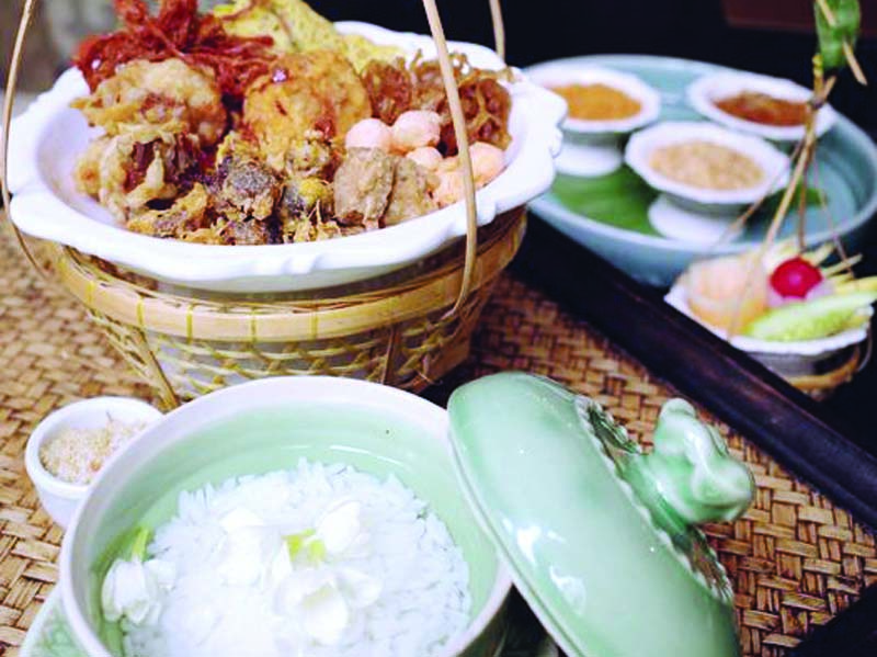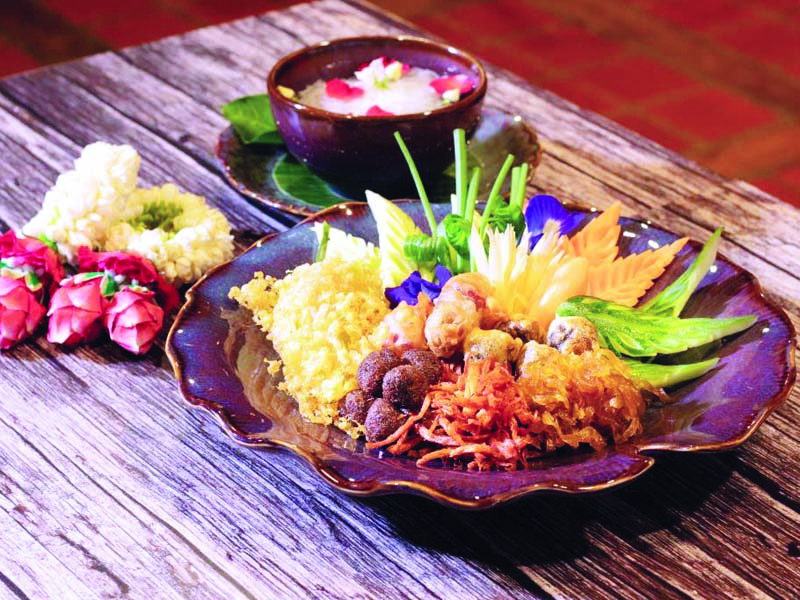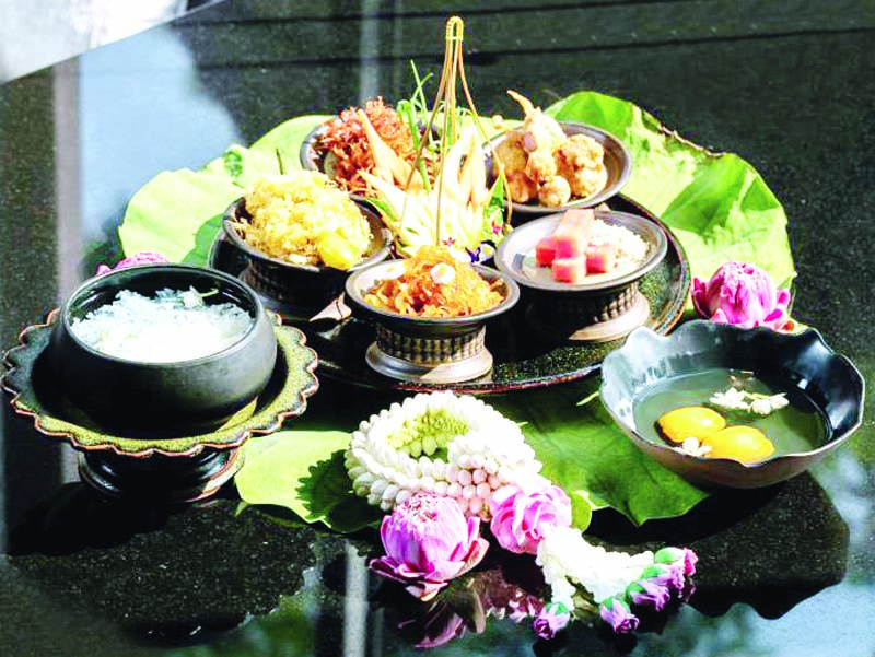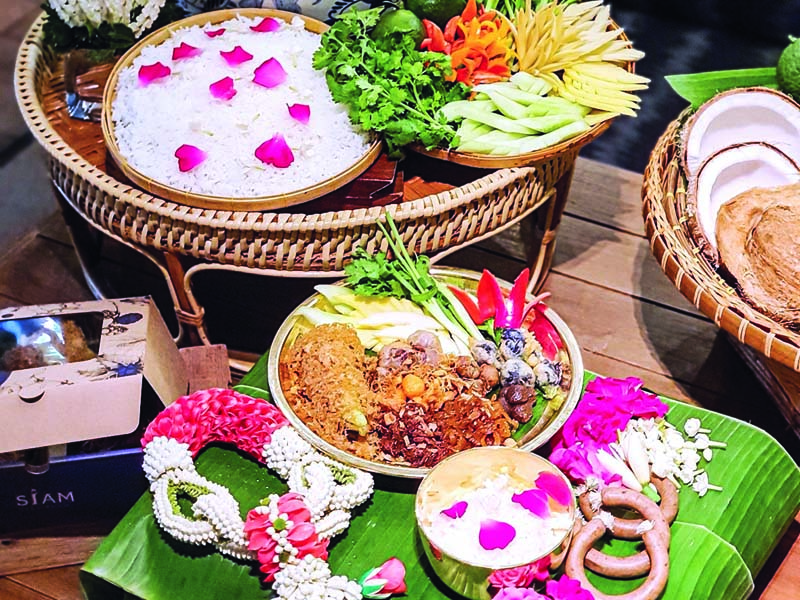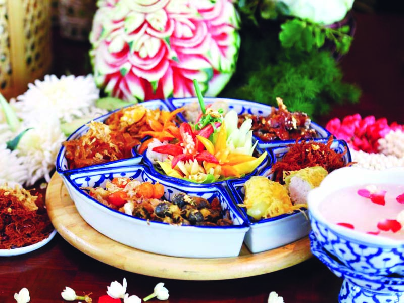 โรงแรมสินธร เคมปินสกี้ นำเสนอข้าวแช่อบควันเทียนลอยดอกมะลิและกลีบกุหลาบ พร้อมเครื่องเคียง ลูกกะปิทอด หัวหอมสอดไส้ ไชโป๊ผัดหวาน พริกหยวกสอดไส้ปลาแห้งผัดหวาน และผักสดแกะสลัก ในราคาชุดละ490 บาท++ ตลอดเดือน เม.ย. ที่ ห้องอาหารเฟลอริช ตลอดเดือน เม.ย. โทร.02-0959999