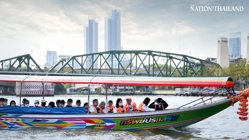 The boat departed from Yod Phiman Pier in Phranakhon district at 9.30am and cruised along the Chao Phraya River into the Bangkok Yai Canal before they got off at Talad Plu Pier.