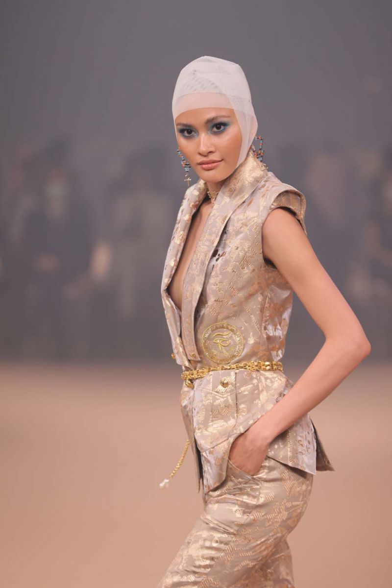 ด้วยความที่ NEFRERETTA เป็นลูกครึ่งออสเตรียกับอียิปต์ ดังนั้น รสนิยมของผู้หญิงคนนี้ก็ยังคงมีความเป็นยูโรเปียนที่โก้หรูอยู่ ข้าพเจ้าจึงสร้างสไตล์ของผู้หญิงคนนี้ด้วยการนำรายละเอียดแบบอียิปต์มาผสมผสานเพื่อให้มีความแตกต่างไม่ซ้ำใคร แต่ยังคงความเป็นตัวตนของเขาอยู่ ไม่ว่าจะเป็นการใช้สี อย่าง สีทอง สีฟ้าเทอร์ควอยซ์ สีดินเผาเทอร์ราคอตต้า (Terracotta)การใช้เครื่องประดับต่างๆ หรือการนำสัญลักษณ์ของอียิปต์มาสร้างสไตล์ ไปจนถึงการออกแบบรูปทรงดอกบัวอียิปต์ขึ้นมาเป็นสัญลักษณ์ใหม่ของฤดูกาล โดยนำเอาไปสอดแทรกอยู่ในส่วนต่างๆ ของคอลเลคชั่น อาทิ ชุดเชิ้ตเดรสแบบซาฟารีสีคาราเมลประดับแขนเสื้อโอเวอร์ไซส์ชุดเดรสผ้าบุหงาที่อัดพลีทแบบ Asymmetrical เสื้อผ้าบุหงาที่ปักลายดอกบัวอียิปต์แบบใหม่ด้วยหินเทอร์ควอยซ์และลูกปัด ชุดเดรสที่ปักดิ้นทองลายนกอินทรี ไปจนถึงกระเป๋าถือรูปทรงพีระมิด”