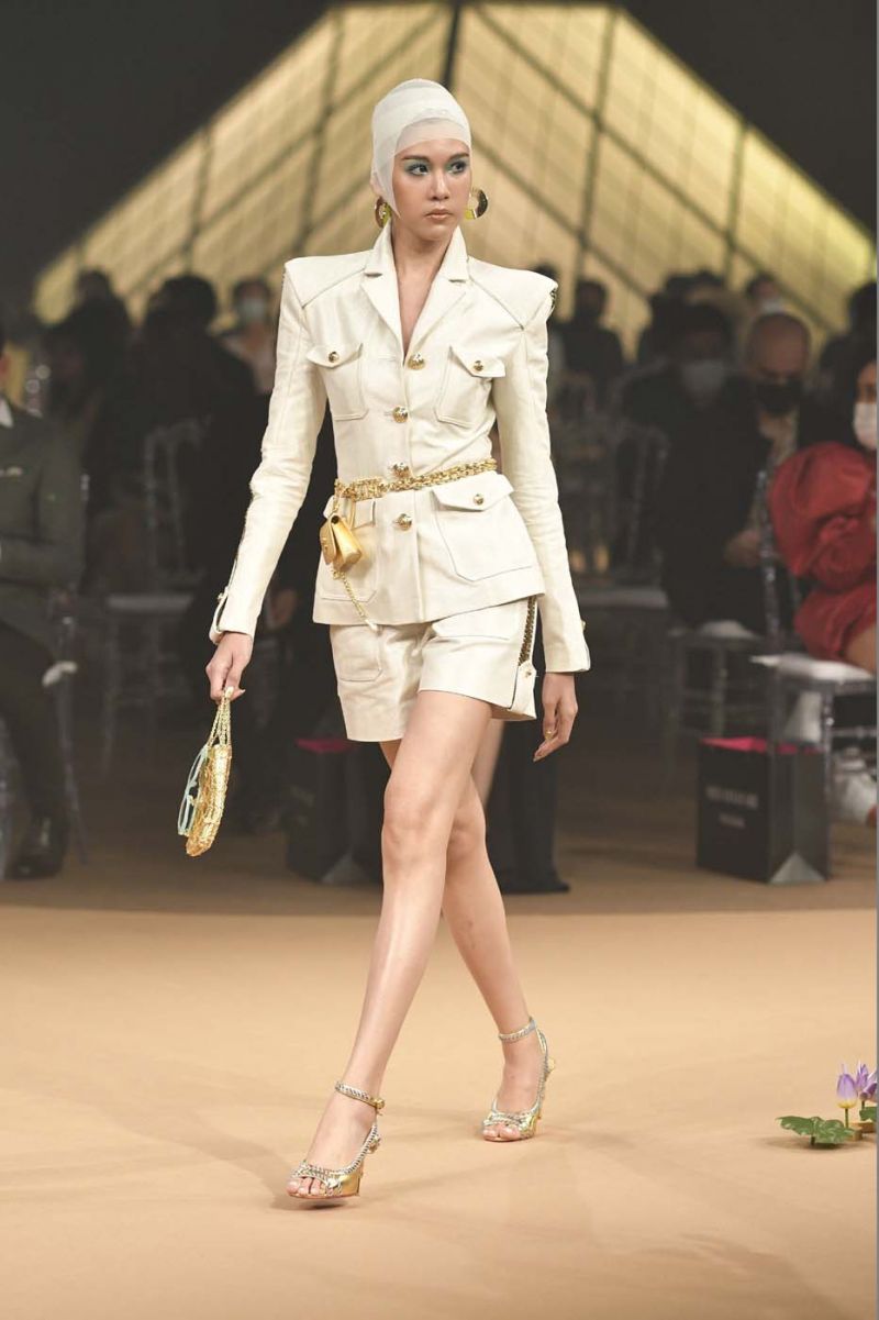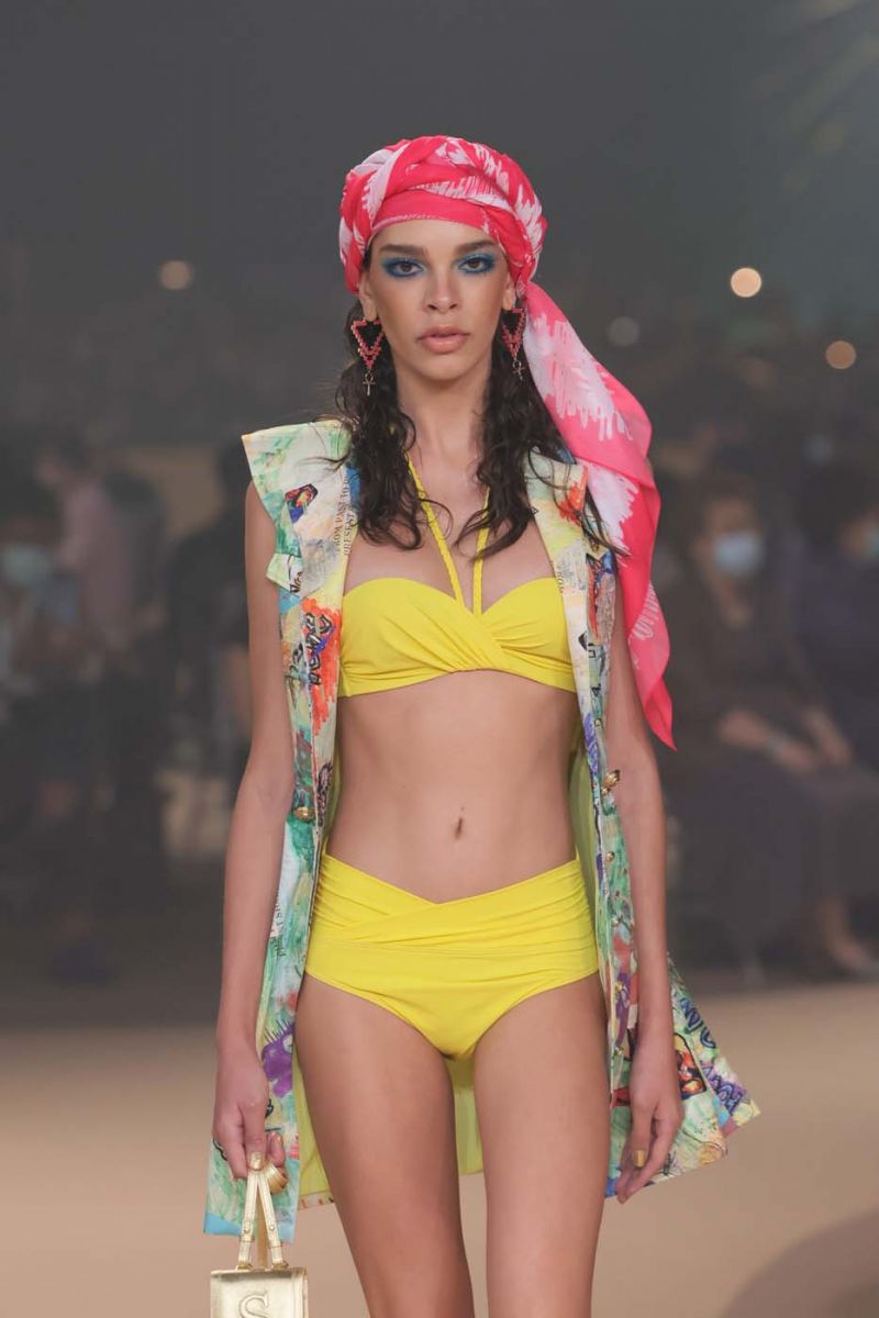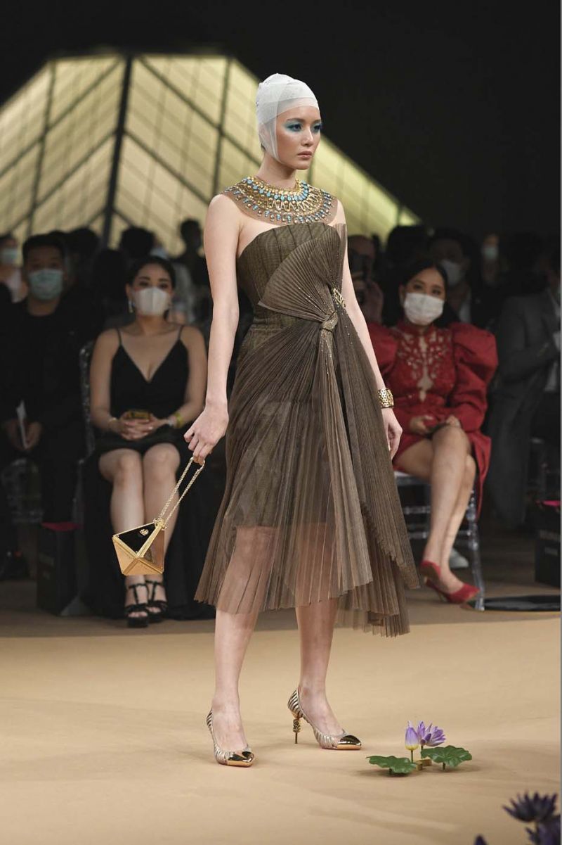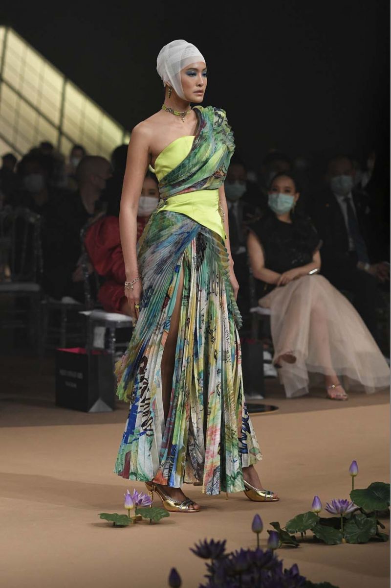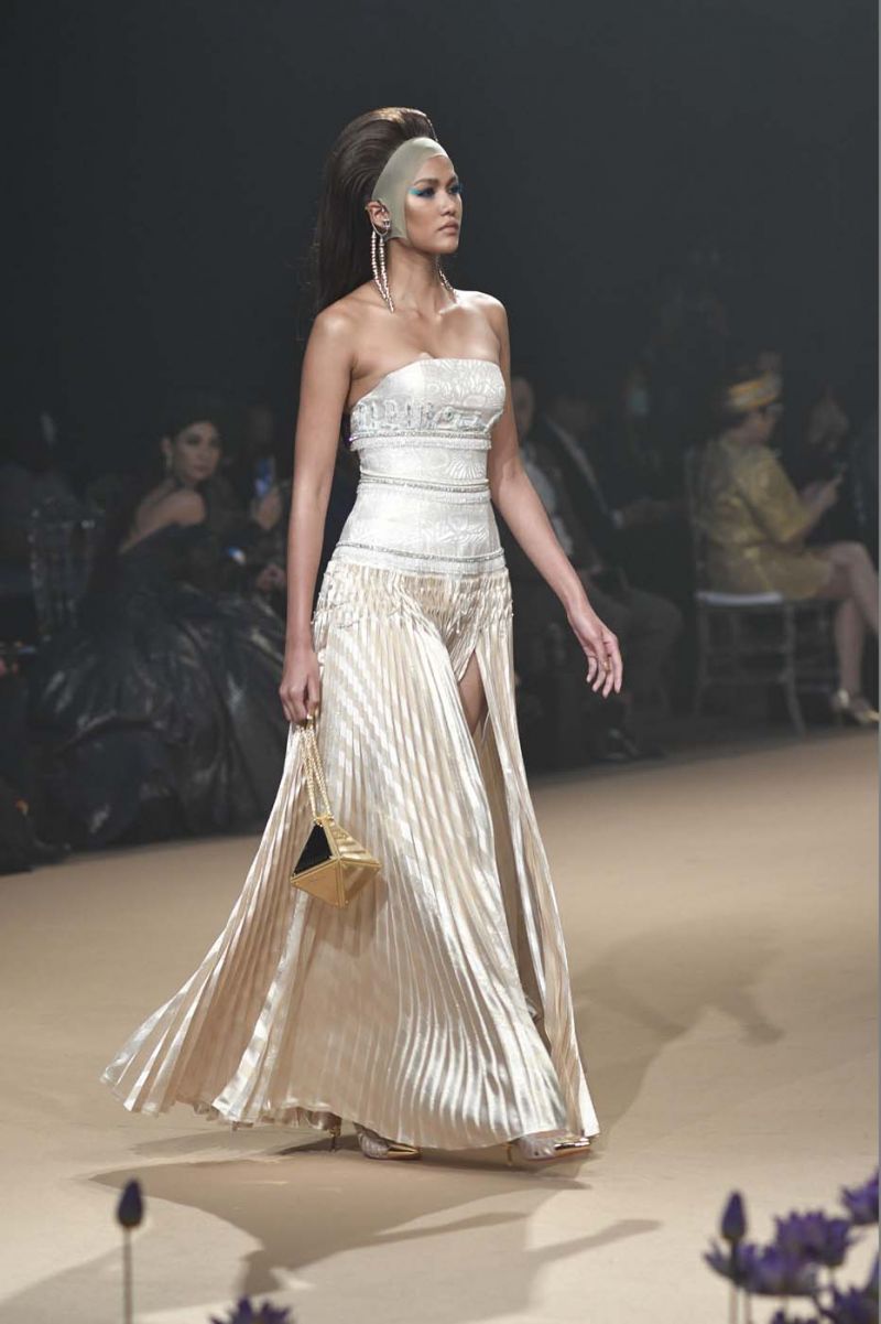หนังถักเมทาลิกทอง ไปจนถึงชุดราตรียาวสีงาช้างปักลายดอกบัวทั้งตัวและโดดเด่นด้วยรายละเอียดของการเย็บและปักผ้าบุหงาช่วงคอ รวมไปถึงคอลเลคชั่นชุดว่ายน้ำสีนีออนฉูดฉาด และชุดคลุมบาธโรบ
