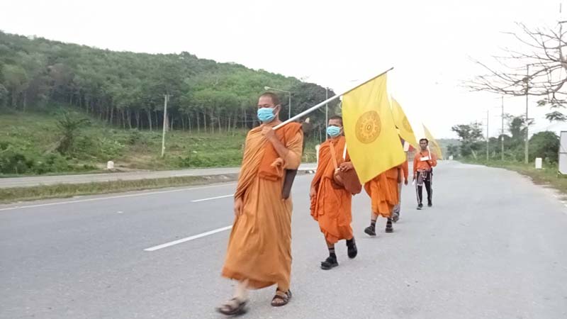 27 มี.ค.64 ผู้สื่อข่าวรายงานความคืนหน้ากรณีคณะเดินธุดงค์ธรรมยาตรา “กรุงเทพ มาหานคร”ระยะทาง 810.4 กม. เพื่อเผยแผ่พระพุทธศาสนาและประชาสัมพันธ์บอกบุญญาติโยมร่วมสร้างโบสถ์วัดเขาพระทอง ต.เขาพระทอง อ.ชะอวด จ.นครศรีธรรมราช รวมระยะทาง 810.4 กม. นำโดยพระมหาอารยนันต์ อานันโท เจ้าอาวาสวัดเขาพระทอง ต.ชะอวด อ.ชะอวด จ.นครศรีธรรมราช นำคณะออกเดินธุดงค์ตามโครงการ เริมเดินธูดงค์ธรรมยาตรา ตั้งแต่เช้าตรู่วันที่ 4 มี.ค.ที่ผ่านมา ซึ่งตลอดเส้นทางมีชาวพุทธที่อาศัยตลอดเส้นทางที่คณะธุดงค์ผ่าน ร่วมทำบุญตักบาตร รวมทั้งโอนเงินผ่านบุญชีธนาคารกรุงไทย ชื่อบัญชีกองทุนเสบียงบุญ สร้างโบสถ์ วัดเขาพระทอง หมายเลขบัญชี 822-0-63803-6 อย่างต่อเนื่อง