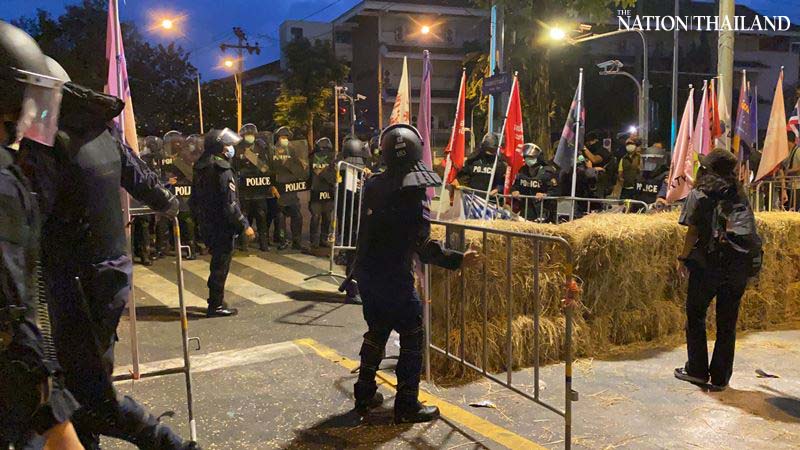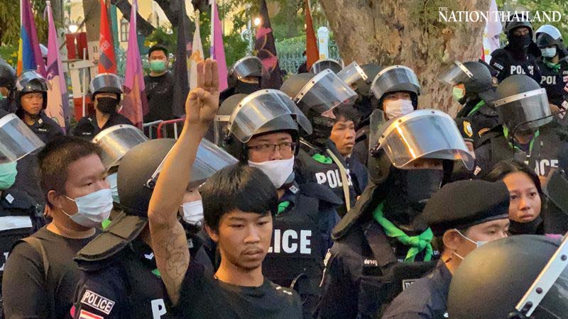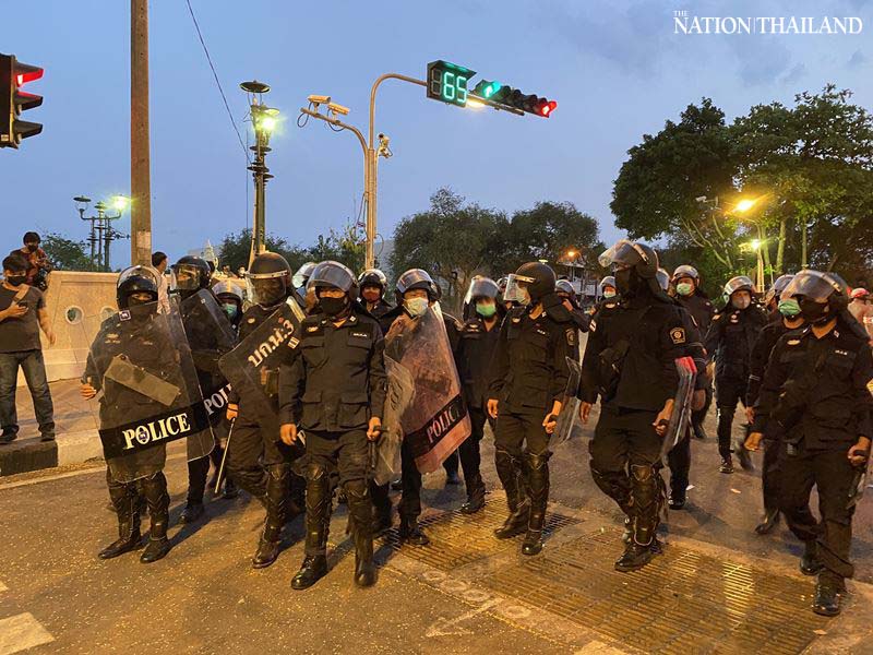 Protection and crowd control police arrested pro-democracy protesters camped on Bangkok’s Rama V Road near Government House on Sunday morning.