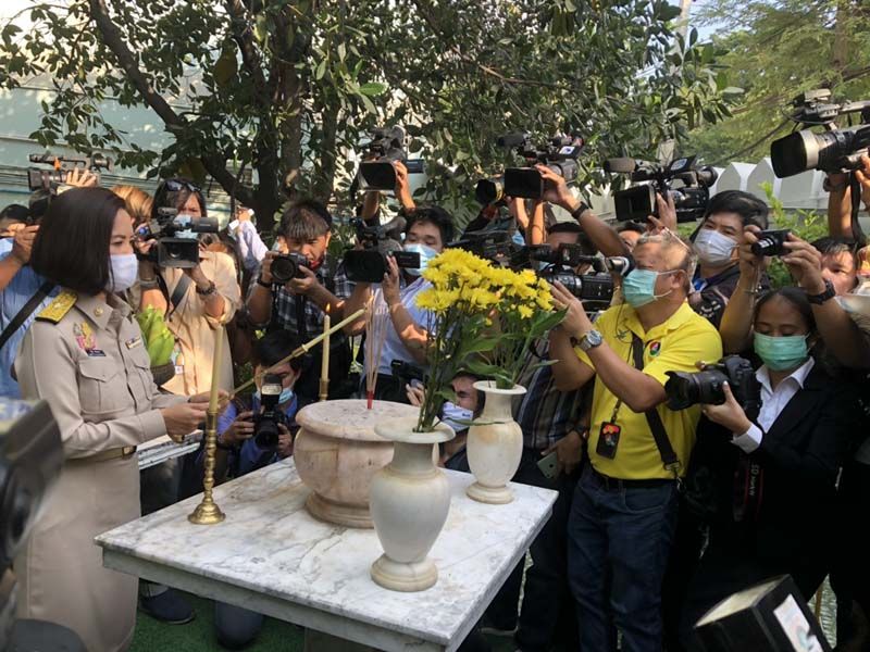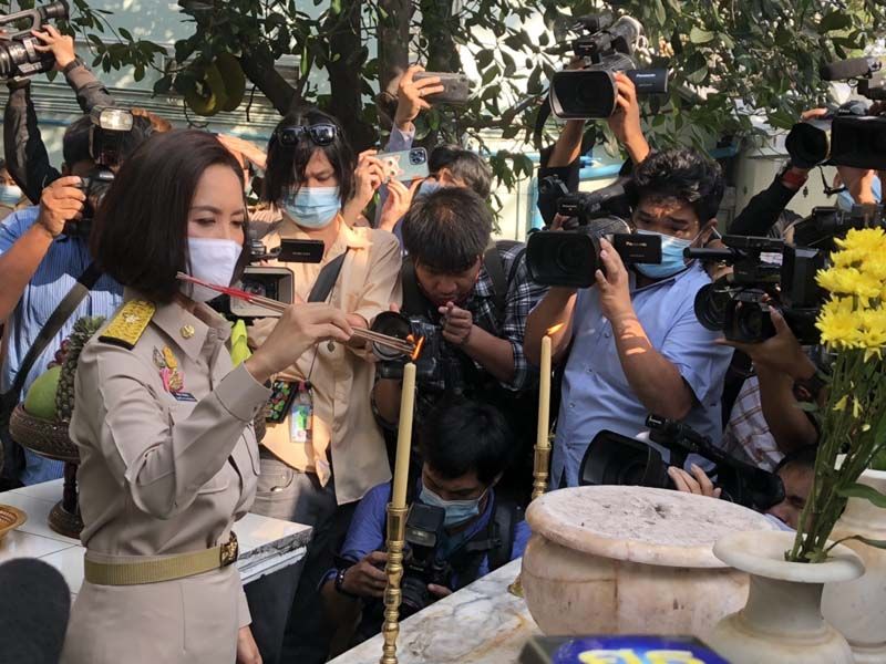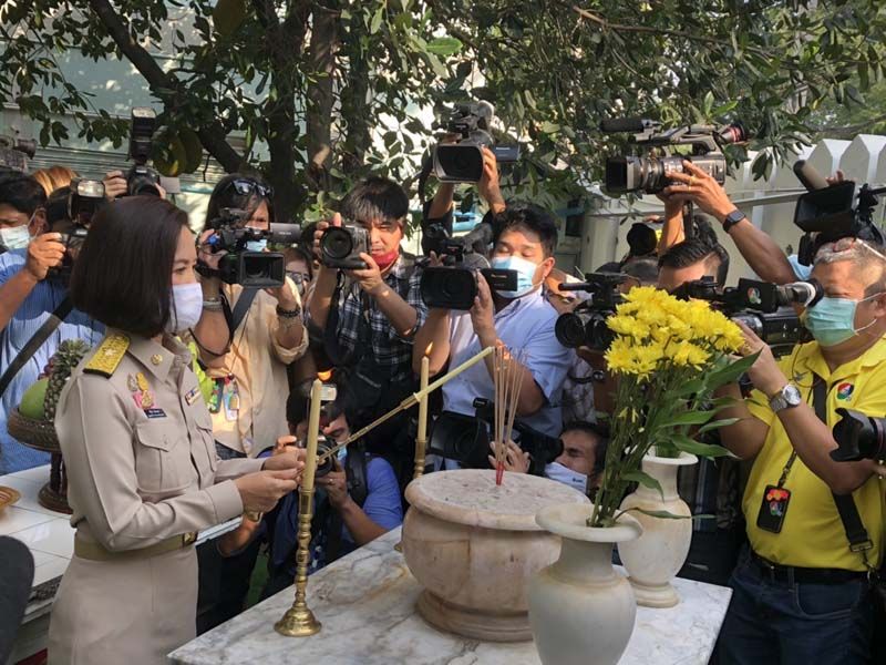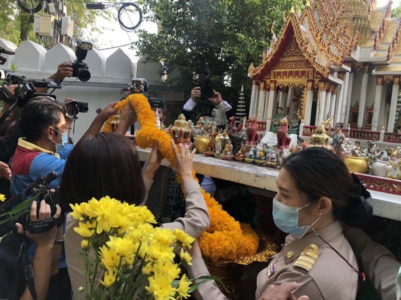 จากนั้น เวลา 08.09 น. น.ส. ตรีนุช เดินไปสักการะพระพุทธบารมีศักดิ์สิทธิ์ สยามิศรจักรี สัฏฐีอนุสรณ์ ศึกษาทรรังสรรค์ พระพุทธรูปประจำกระทรวง สักการะศาลพระภูมิ ประจำกระทรวง สักการะพระบรมราชานุสาวรีย์พระบาทสมเด็จพระมงกุฎเกล้าเจ้าอยู่หัว (รัชกาลที่ 6) ก่อนเดินทางกลับมาพบ กลุ่มนักเรียนเลว บริเวณหน้าอาคารราชวัลลภ โดยกลุ่มนักเรียนเลวได้ถามว่า ในฐานะที่ท่านได้รับตำแหน่งรัฐมนตรีว่าการกระทรวงศึกษาธิการแล้ว อันดับแรกที่ท่านจะทำเพื่อพัฒนาการศึกษาไทยคืออะไร ซึ่ง นส.ตรีนุช ก็บอกว่าตนกำลังจะแถลงนโยบายกับสื่อมวลชน ก็จะได้ทราบไปพร้อม ๆกัน หนู ๆก็เป็นเหมือนลูกเหมือนหลานมีอะไรก็คุยกันได้ เราได้เจอกันอีกแน่นอน พร้อมกับได้เขิญกลุ่มนักเรียนเลวมาร่วมรับฟังนโยบายที่จะแถลงด้วย