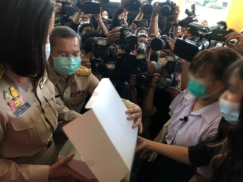 ผู้สื่อข่าวรายงานว่า เวลา 08.05 น. กลุ่มนักเรียนเลว จำนวน 5 คน นำกล่องของขวัญสีขาว ภายในเป็นขนมเค้ก รูปอาคารราชวัลลภ มาเซอร์ไพรส์ รอต้อนรับน.ส.ตรีนุช ในโอกาสรับเข้าตำแหน่งด้วย