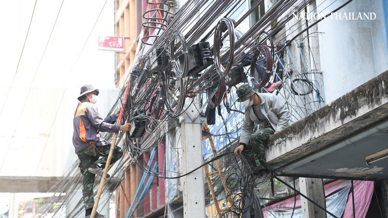 Bangkok clears jungle of cables hanging over Charansanitwong Road
