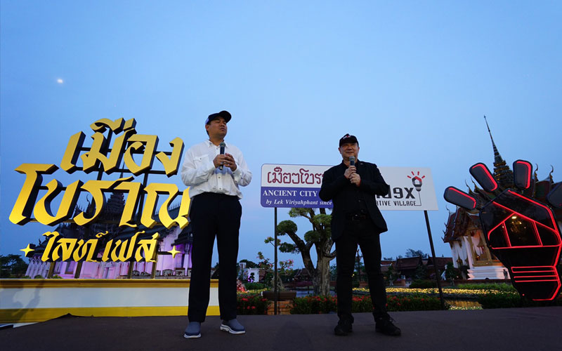 นายปั้น ทองทิว วิริยะพันธุ์ กรรมการผู้จัดการ บริษัท เมืองโบราณ จำกัด กล่าวถึงความร่วมมือในการจัดงาน ครั้งนี้ว่า “นับเป็นโอกาสอันดี ที่เมืองโบราณ สมุทรปราการ อุทยานประวัติศาสตร์ที่มีชีวิต ได้ร่วมมือกับ บริษัท อินเด็กซ์ ครีเอทีฟ วิลเลจ จำกัด สร้างสรรค์งานเมืองโบราณ ไลท์ เฟส ขึ้น ซึ่งเป็นช่วงเวลาสำคัญที่เมืองโบราณ ได้นำเทคโนโลยีสื่อผสมสมัยใหม่มาใช้พัฒนาการจัดแสดงของพิพิธภัณฑ์ เป็นการจัดกิจกรรมต่อยอดภารกิจทางวัฒนธรรม จากพิพิธภัณฑ์เอกชนกลางแจ้งที่เป็นแหล่งรวบรวมสถาปัตยกรรมและศิลปกรรมของไทยโบราณ สู่ความเป็นกลุ่มพิพิธภัณฑ์เอกชน ที่ทันสมัยและเป็นที่รู้จักไปทั่วโลก